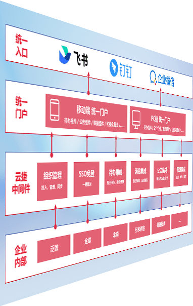对协作平台提供支持服务,,支持企业应用与协作平台对接,,,,包含组织同步、、、、消息集成、、待办集成等。。支持目前主流的协作平台:钉钉、、、、企微和飞书。。。。